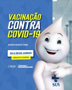Com o propósito de aumentar a cobertura vacinal contra a Covid -19 no município, a Prefeitura de Picos através da Secretaria Municipal de Saúde vai intensificar a imunização contra a Covid-19. Segundo o coordenador da Imunização, Yago Carvalho, o imunizante contra a Covid-19 ganhou uma nova versão. ”O calendário de vacinação ganhou uma novidade. Na luta contra a Covid-19, o imunizante está com uma nova versão, contra uma cepa atual, a inclusão da vacina Monovalente XBB na estratégia de vacinação”, explicou o Coordenador. O Coordenador destacou também, a importância de manter a caderneta e vacinação sempre atualizada. “A emergência de saúde pública para Covid-19 acabou, mas o vírus continua a circular e sofre mutações. Por isso, é importante que as pessoas mantenham sua vacinação atualizada”, pontuou. Em 2024, o público-alvo da campanha são principalmente crianças entre 6 meses e menos de 5 anos de idade, idosos, pessoas imunocomprometidas, indivíduos com comorbidades ou deficiências permanentes, gestantes e puérperas entre outros. Confira o cronograma de vacinação: VACINA COVID-19 MONOVALENTE (XBB) 25/06 – Pessoas de 60 anos e mais. CPF, Cartão do SUS, Cartão de vacinação. Local: CEMPI das 08h às 12h OBS: Intervalo mínimo de três meses após a última dose da vacina contra a Covid-19; VACINA COVID-19 MONOVALENTE (XBB) 26/06 Gestantes e Puérperas, Trabalhadores da saúde. CPF, Cartão do SUS, Cartão de vacinação. Local: CEMPI das 08h às 12h OBS: Intervalo mínimo de três meses após a última dose da vacina contra a Covid-19; 27/06 Pessoas com comorbidades CPF, Cartão do SUS, Cartão de vacinação, Laudo médico comprobatório. Local: CEMPI das 08h às 12h. OBS: Intervalo mínimo de três meses após a última dose da vacina contra a Covid-19; 28/06 Crianças de 6 meses a 4 anos de idade CPF, Cartão do SUS, Cartão de vacinação. Local: CEMPI das 08h às 12h. OBS: Intervalo mínimo de três meses após a última dose da vacina contra a Covid-19. Fonte: CCOM